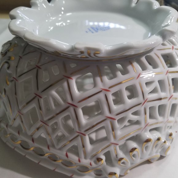 Herend Open Weave Round Basket Rare Never Used.