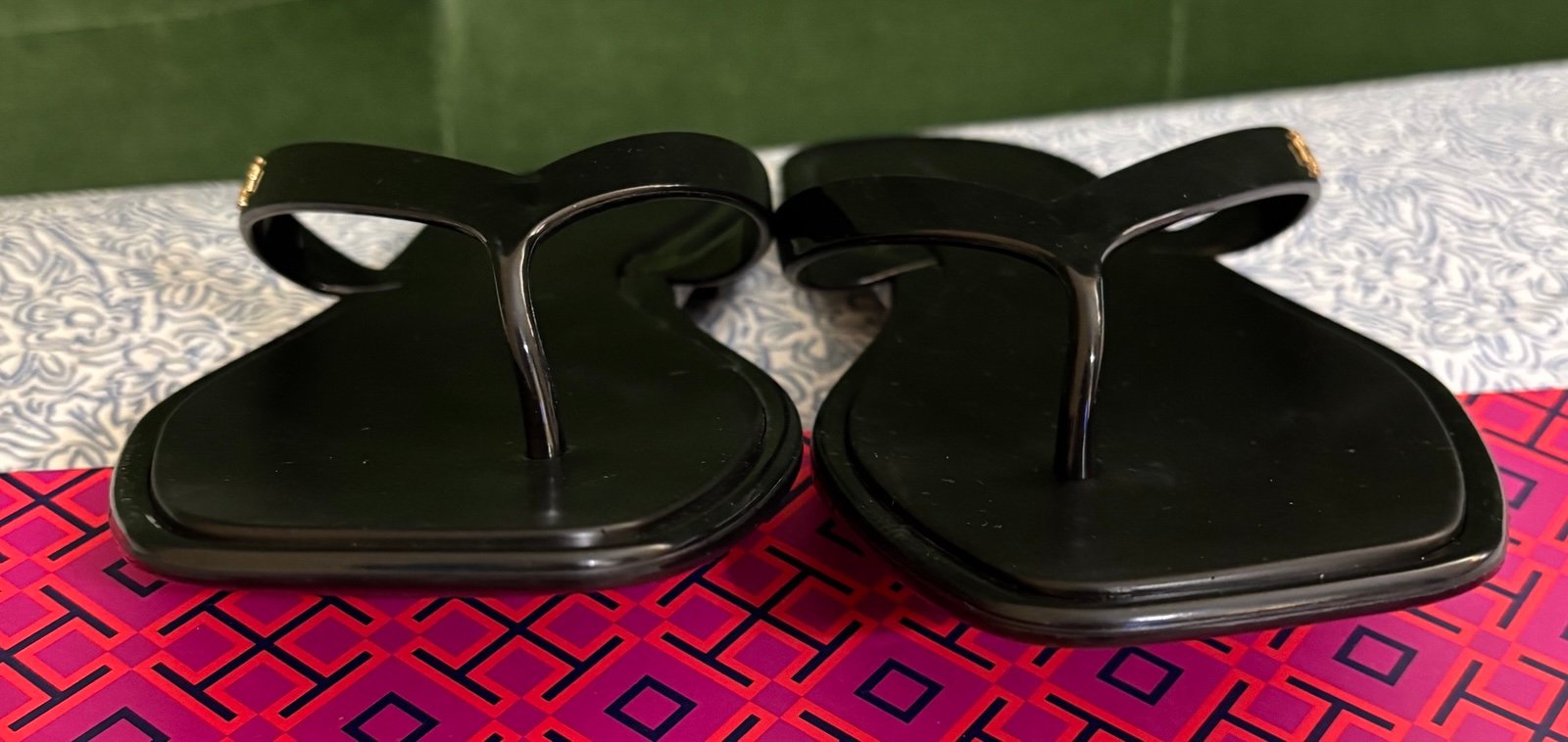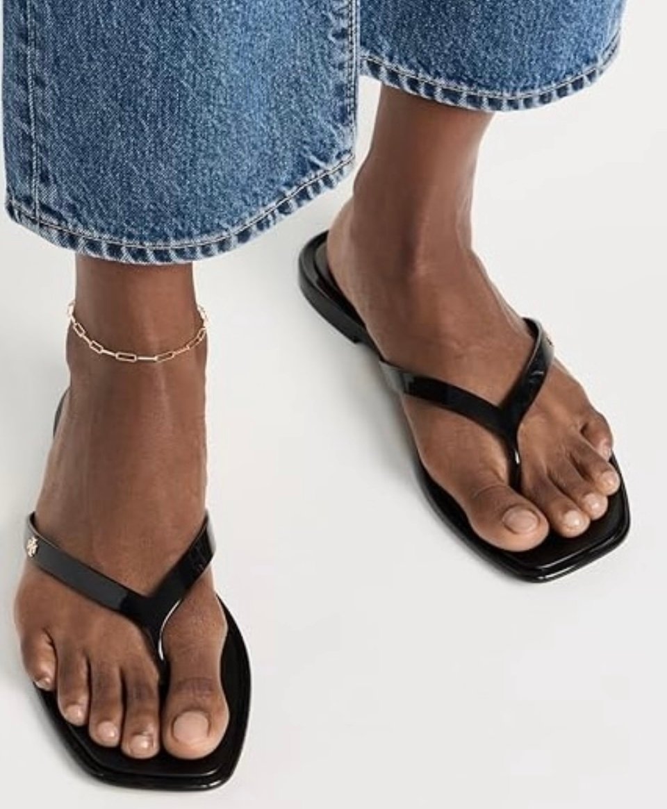 Tory Burch Roxanne pool flip flops/sandals, color is perfect black - size is 8. This color/size/style is currently sold out from all major retailers. Original retail price $98.